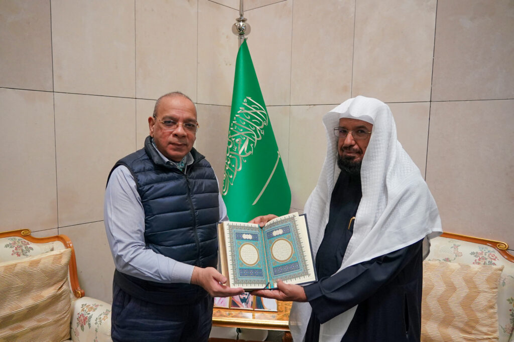 زار معالي رئيس السلطة القضائية في جمهورية بنغلاديش، الدكتور سيد رفعت أحمد يوم الأحد الموافق الأول من شهر رجب 1447هـ، مجمع الملك فهد لطباعة المصحف الشريف، يرافقه وفد رسمي، وذلك للاطلاع على جهود المملكة العربية السعودية في طباعة المصحف الشريف ونشره عالميا واطلع معاليه خلال زيارته على إصدارات المجمع من المصاحف بمختلف الأحجام والروايات والترجمات لمعاني القرآن الكريم إلى لغات عالمية، إلى جانب ما يوظفه المجمع من أنظمة رقمية وتقنيات حديثة في مراحل الطباعة بأعلى معايير الدقة والجودة. وأبدى معاليه تقديره لما يحظى به المجمع من دعم كريم من القيادة الرشيدة -أيدها الله- مشيدا بالدور الذي يضطلع به المجمع في خدمة كتاب الله، كما نوه بالجهود التي يبذلها معالي وزير الشؤون الإسلامية والدعوة والإرشاد، المشرف العام على المجمع، الشيخ الدكتور عبداللطيف آل الشيخ، في متابعة أعمال المجمع وتعزيز حضوره العلمي والدولي.